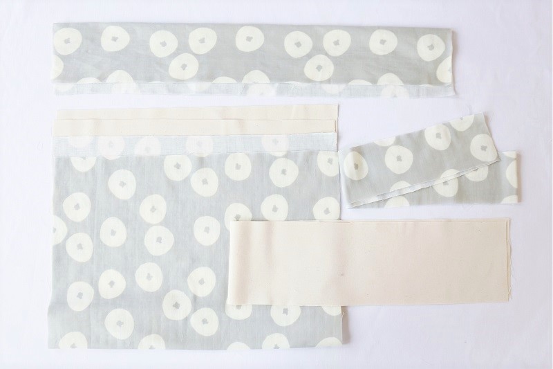 Wガーゼのやわらかな印象を活かしつつ、バッグとして成り立つしっかりさを出すために、内布と口布にはオックス地を使用しました。そして本体はもちろん、持ち手や巾着ひもにもWガーゼを使うことでほんわかとした優しい雰囲気を出しました。