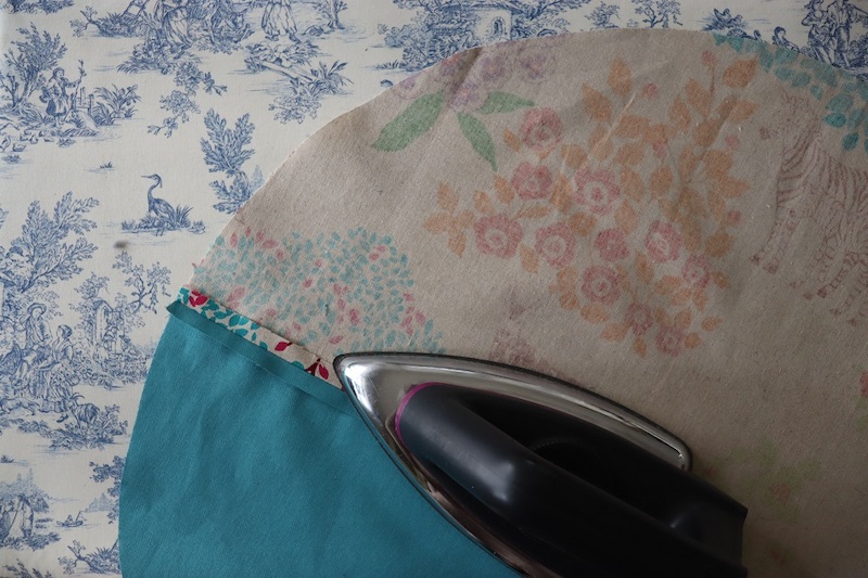 半円に1㎝足したパーツが外面で、柄布と無地各1枚