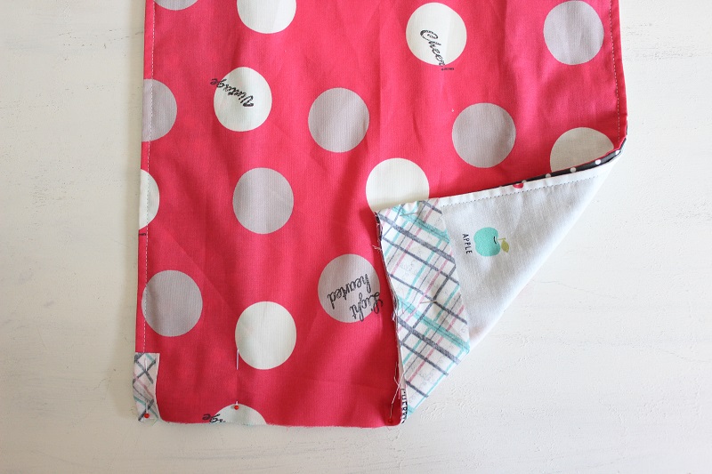 底を折りたたみ、バイアステープでくるみ1度縫い合わせます。