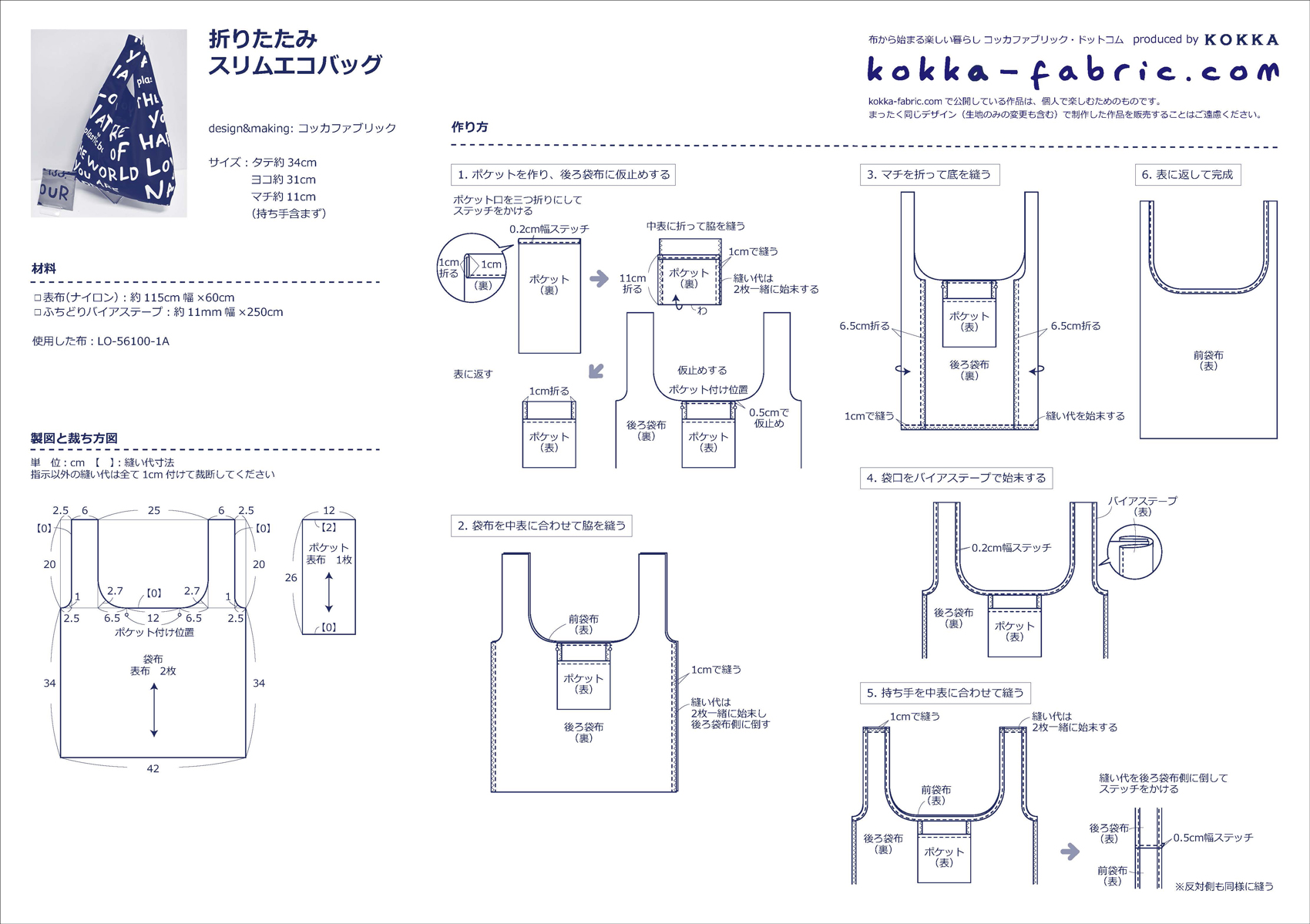 裏地なしで簡単!ナイロン製・折りたたみスリムエコバッグの作り方