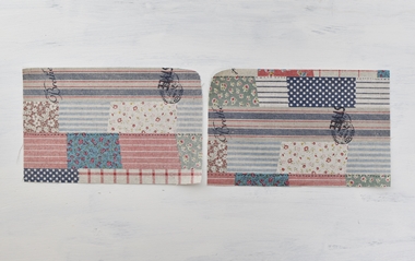 パッチワークの柄は、どこの部分を使うか選ぶ楽しみがあります。今回は柄をストライプにとり、すっきりと見えるようにしました。