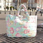 スタンダードなフォルムのトートバッグもフリルをつけるとフェミニンな印象に。お出かけ時のワンポイントにもなります。使った布は「fairy tale」シリーズ。人魚姫がなんともかわいらしい総柄です。コットン100%のシーチングは縫いやすく、ソーイングビギナーにもおすすめです。