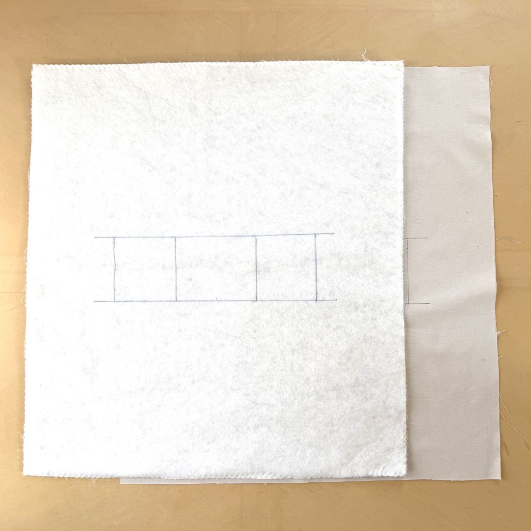表布の裏にキルト芯を重ね、まわりをジグザグミシンで縫います。