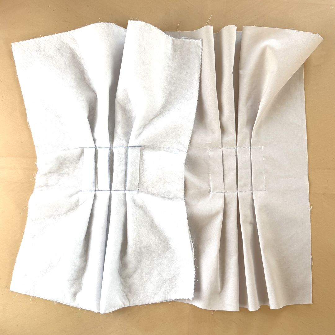 タックを中央に向けて倒して縫い抑えます。