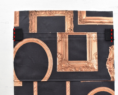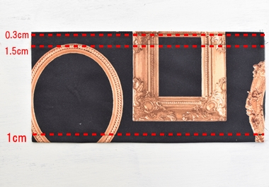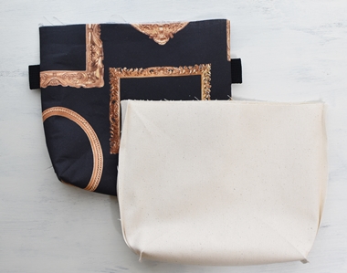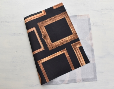 しっかりしたフォルムを出したいときは、表布に接着心を貼ります。※フレーム柄に刺繍などを施したいときはここで入れます。