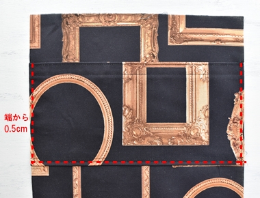 表生地の上から6cmのところに後ろポケットを縫いつけます。