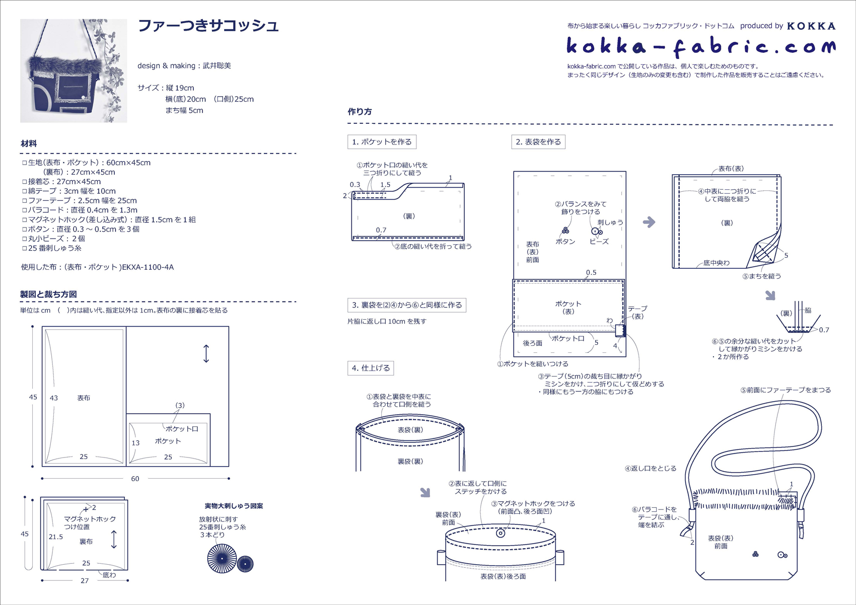 KF:武井さん、どうもありがとうございました!ファーつきサコッシュの作り方プロセスも武井さんに撮影していただきましたので、ぜひ、作り方シート(PDF)と合わせて参考にしてくださいね。