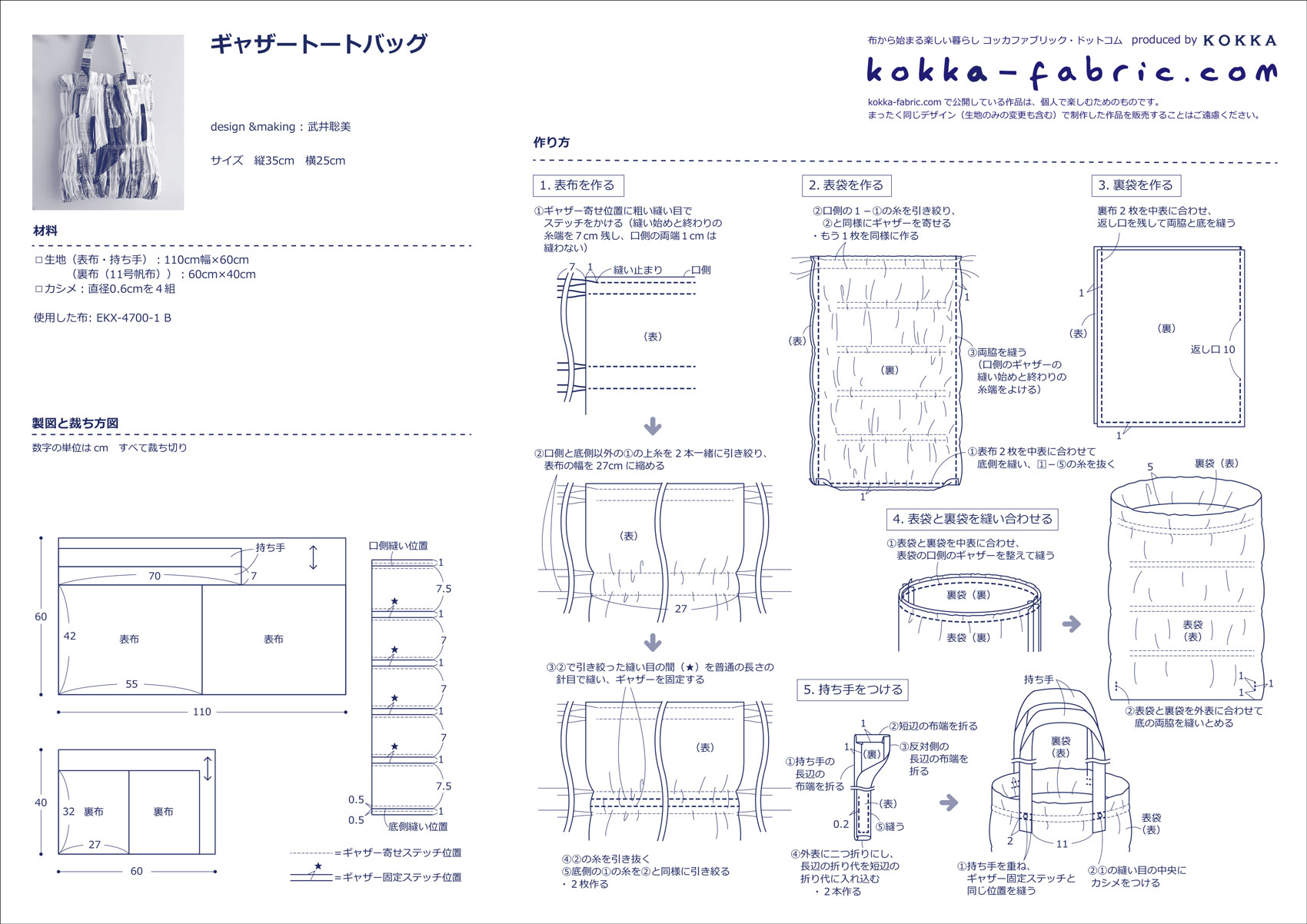 KF:武井さん、どうもありがとうございました!ギャザートートバッグの作り方プロセスも武井さんに撮影していただきましたので、ぜひ、作り方シート(PDF)と合わせて参考にしてくださいね。