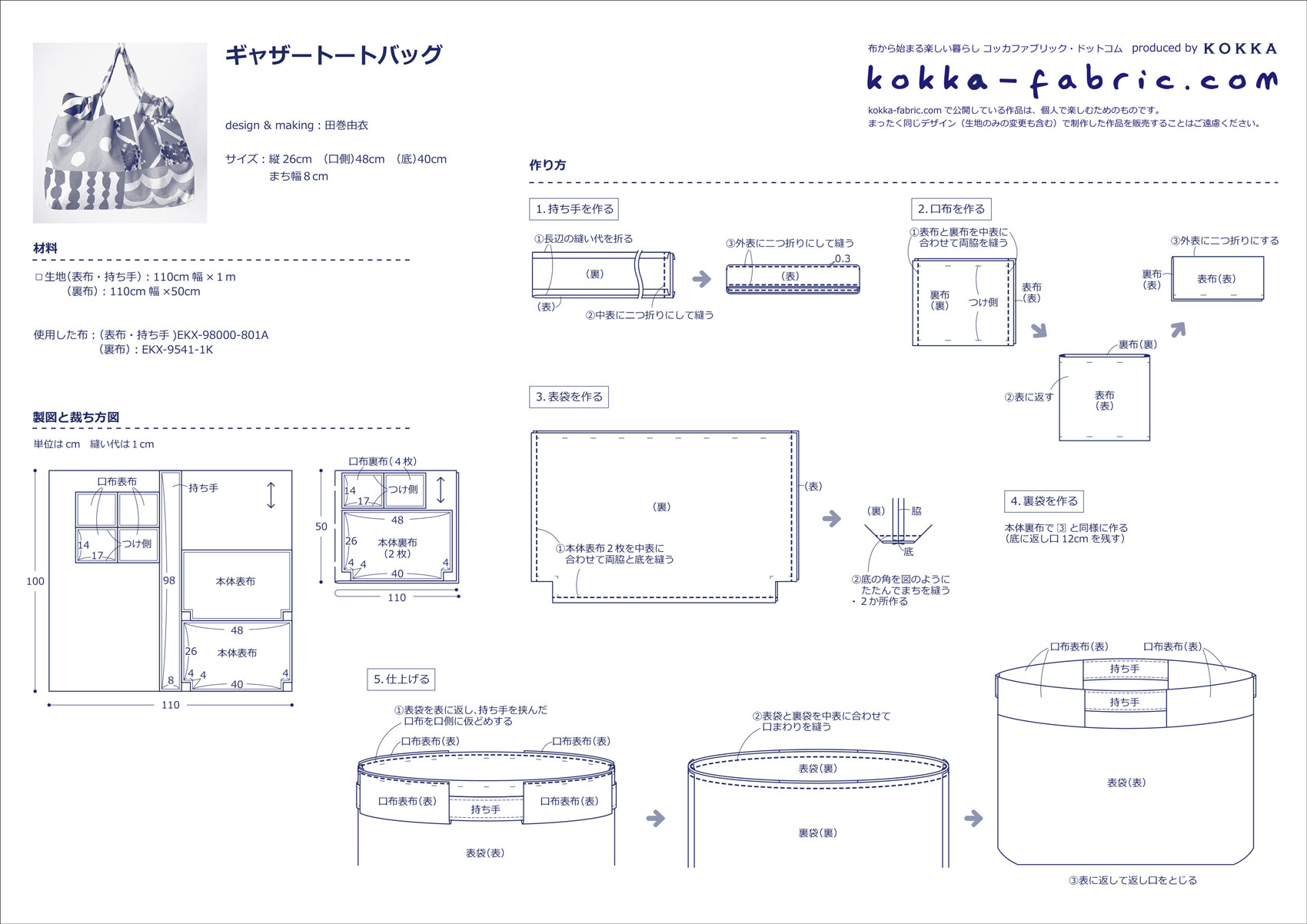 KF:田巻さん、どうもありがとうございました!ギャザートートバッグの作り方プロセスも田巻さんに撮影していただきましたので、ぜひ、作り方シート(PDF)と合わせて参考にしてくださいね。