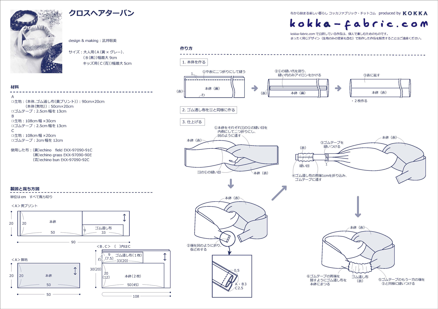 KF:武井さん、どうもありがとうございました!クロスヘアターバンの作り方プロセスも武井さんに撮影していただきましたので、ぜひ、作り方シート(PDF)と合わせて参考にしてくださいね。