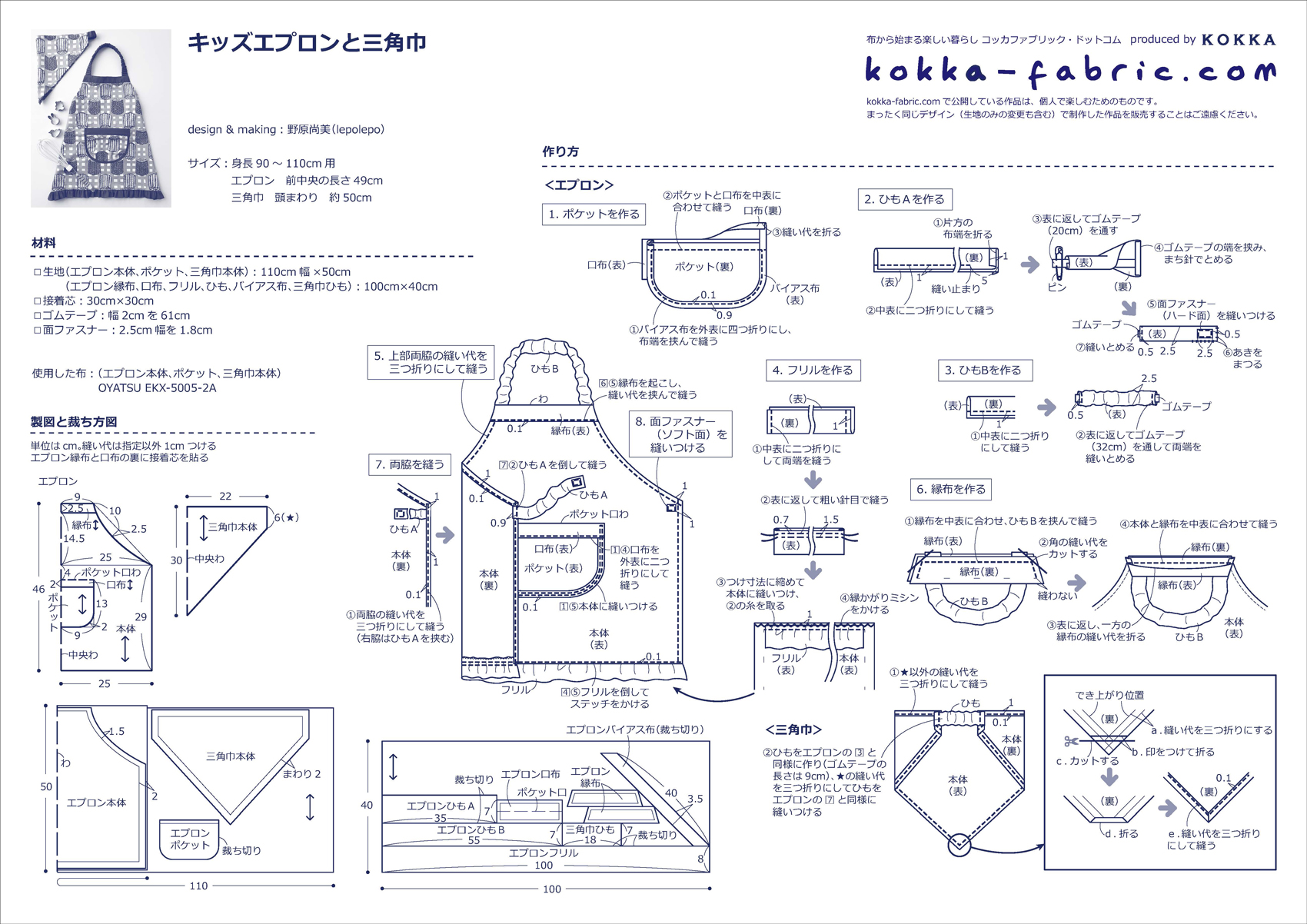 KF:野原さん、どうもありがとうございました!キッズエプロンと三角巾の作り方プロセスも野原さんに撮影していただきましたので、ぜひ、作り方シート(PDF)と合わせて参考にしてくださいね。