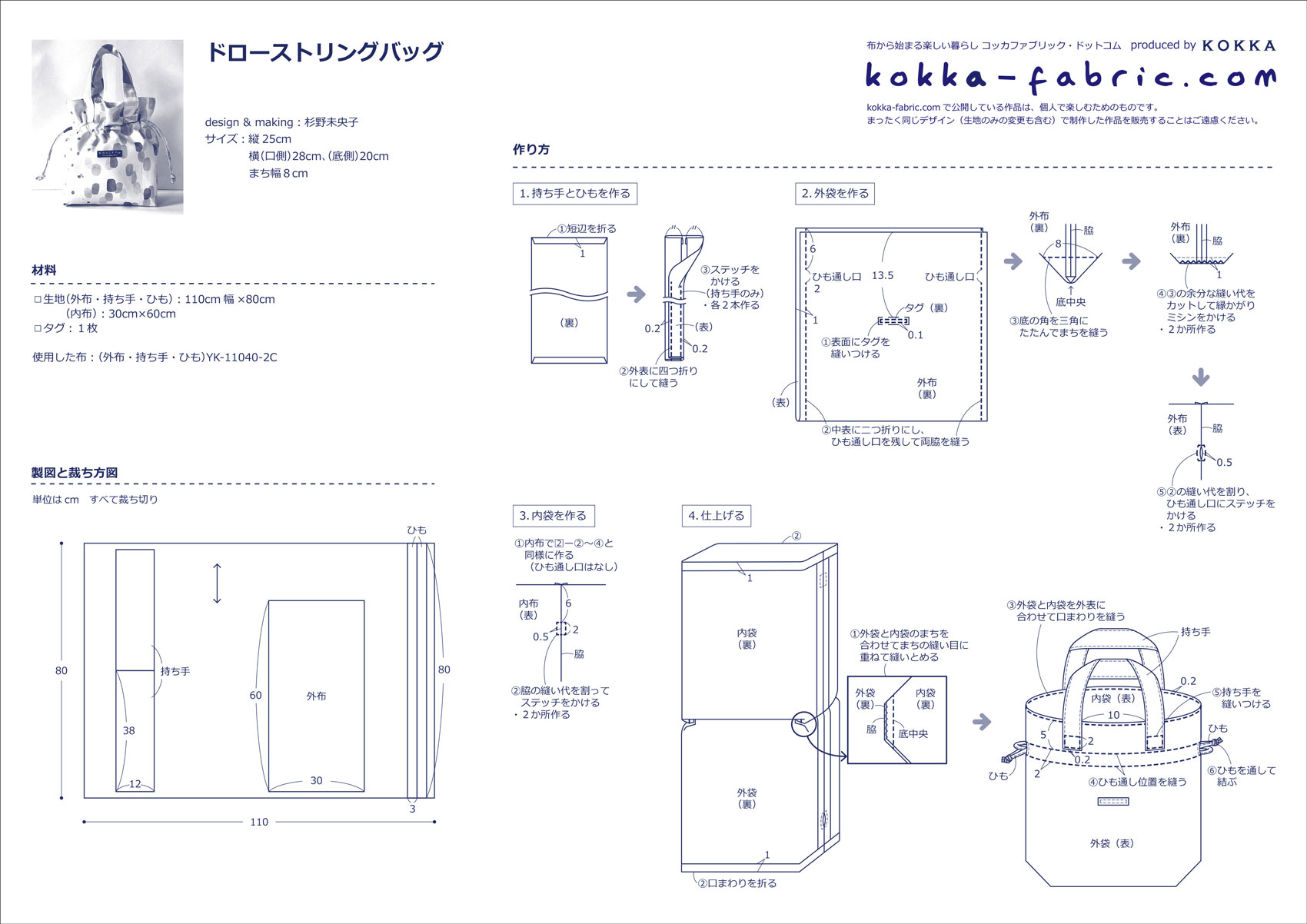 KF:杉野さん、どうもありがとうございました! ドローストリングバッグの作り方プロセスも杉野さんに撮影していただきましたので、ぜひ、作り方シート(PDF)と合わせて参考にしてくださいね。