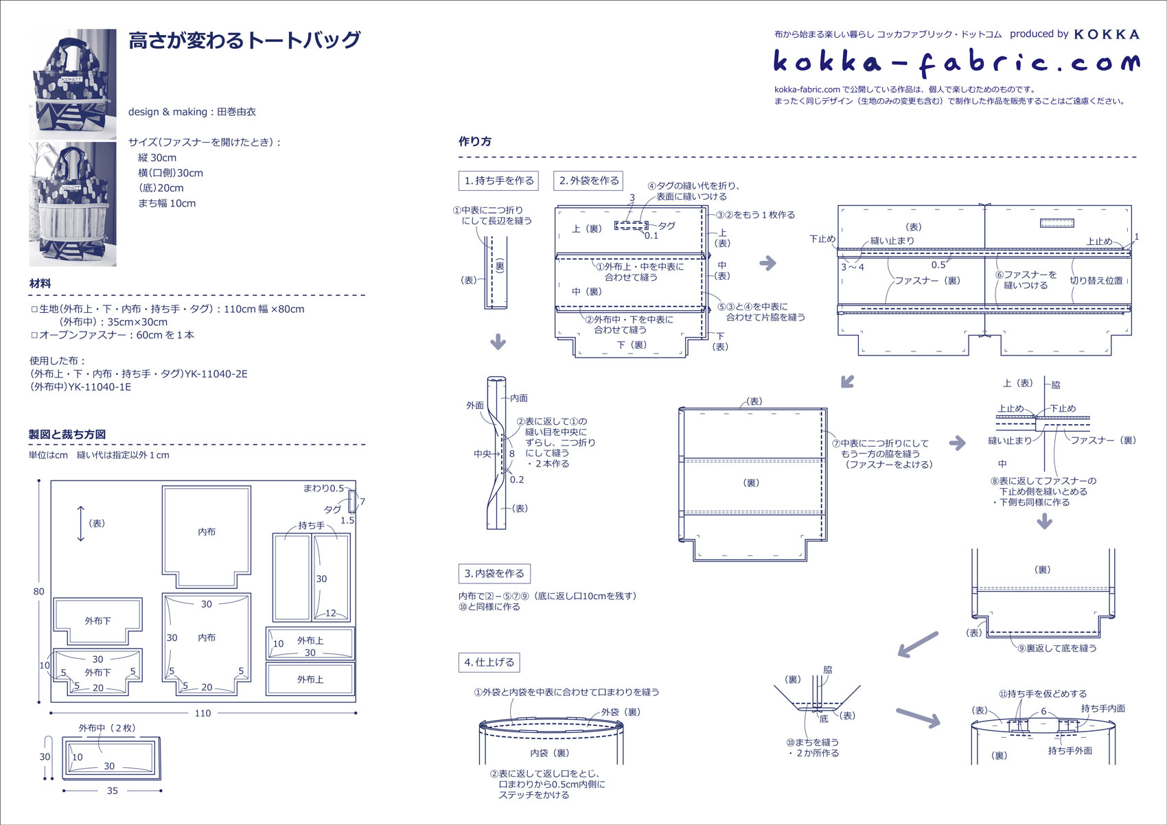 KF:田巻さん、どうもありがとうございました!高さが変わるトートバッグの作り方プロセスも田巻さんに撮影していただきましたので、ぜひ、作り方シート(PDF)と合わせて参考にしてくださいね。