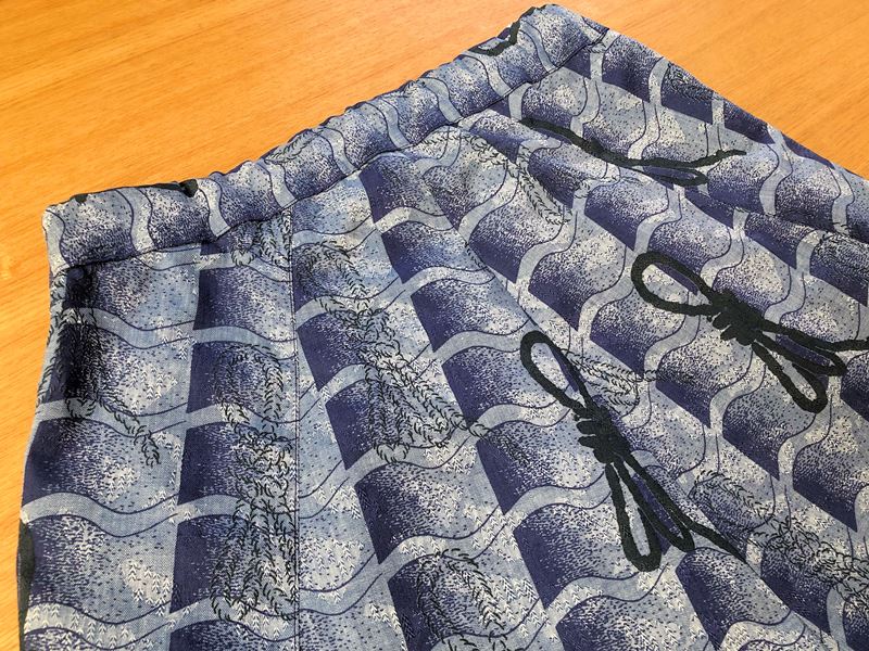 前スカートを縫い合わせる際、斜めに裁ってあるため伸ばしやすいので注意です。前スカートと後スカートを縫う時には、後スカートの正目を上に見て縫うと伸びにくいです。