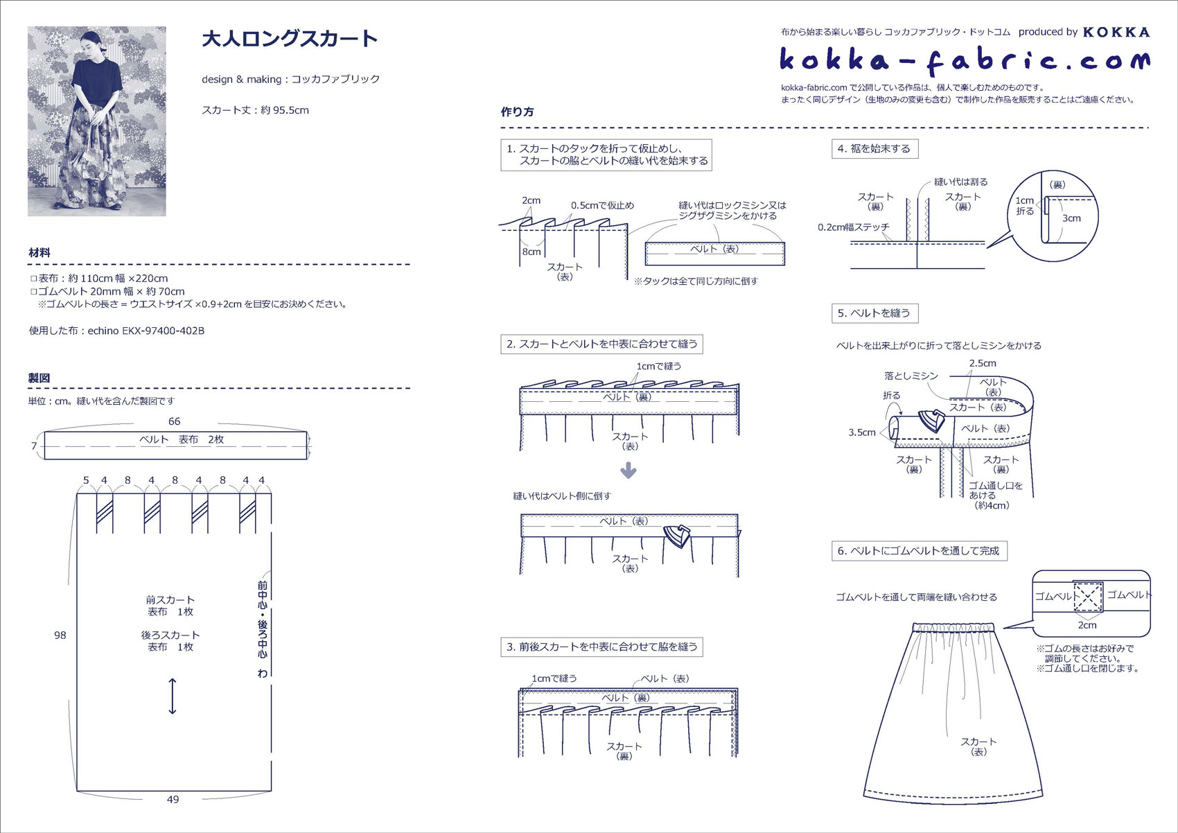 ふんわり広がるタック入りロングスカートの作り方