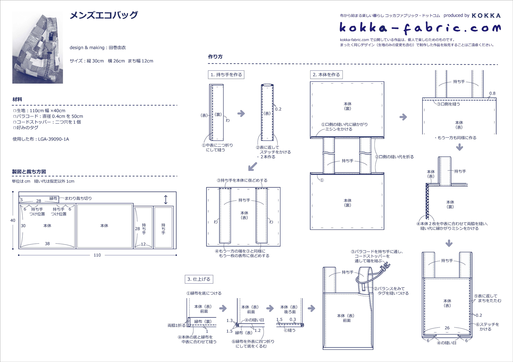 KF:田巻さん、どうもありがとうございました!メンズエコバッグの作り方プロセスも田巻さんに撮影していただきましたので、ぜひ、作り方シート(PDF)と合わせて参考にしてくださいね。