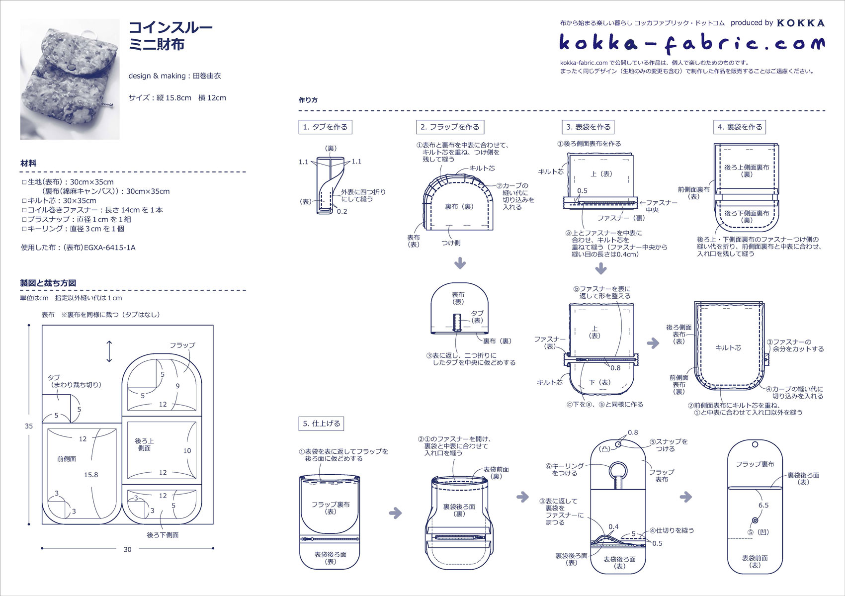 KF:田巻さん、どうもありがとうございました!コインスルーミニ財布の作り方プロセスも田巻さんに撮影していただきましたので、ぜひ、作り方シート(PDF)と合わせて参考にしてくださいね。