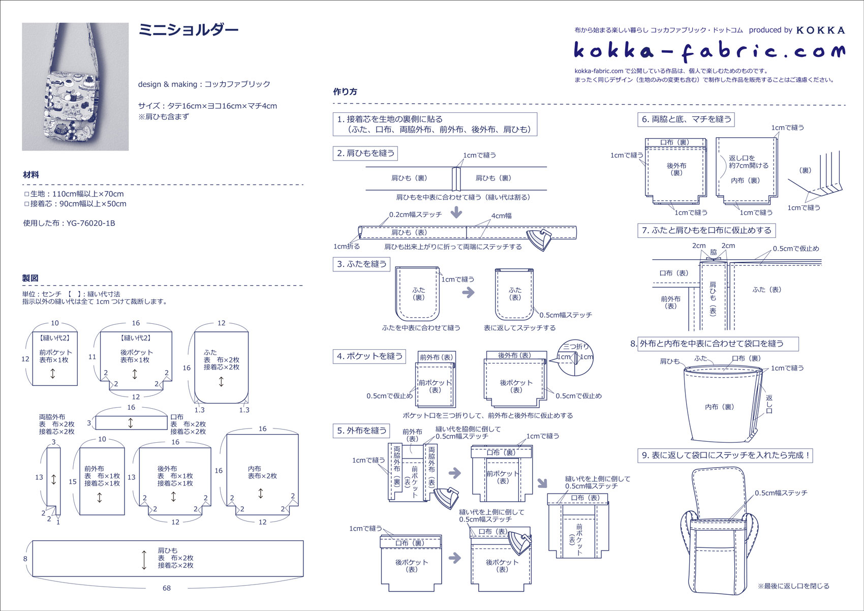 スマートフォンやお財布など大事なものをコンパクトに収納できる小さなショルダーバッグです。前にも後ろにも外ポケットがついているので、クーポンやチケットなどをしまうのに役立ちそう。使った布は「MONOTONE SWEETS」シリーズ。コットン100%のオックスフォードは、縫いやすく、バッグづくりにおすすめです。