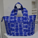ポシェットより少し大きめのショルダーバッグです。使った布は、JUBILEEの新柄、triangles。三角定規モチーフ×ドットという幾何デザインは、ドットの見え方で表情が楽しめます。バッグづくりにぴったりの綿麻キャンバスです。