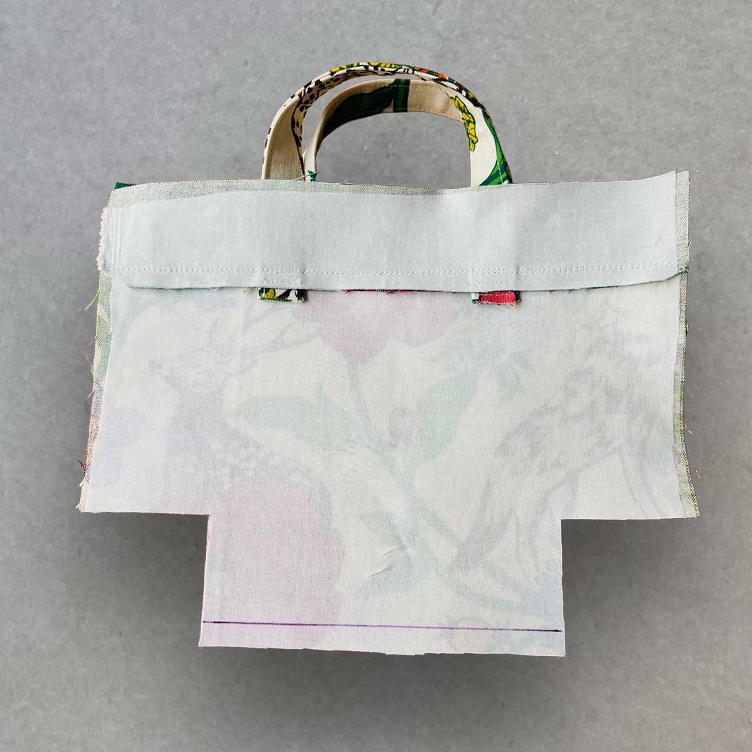 小さいバッグほど、途中でアイロンをかけることが大切です。工程ごとにアイロンを入れると、全体がとても作りやすくなります。特に持ち手まわりは、あらかじめアイロンで折り目をつけてから縫うと、仕上がりが安定します。柄布を使う場合は、裁断前に「どの柄を正面に出したいか」を決めておくのもポイントです。