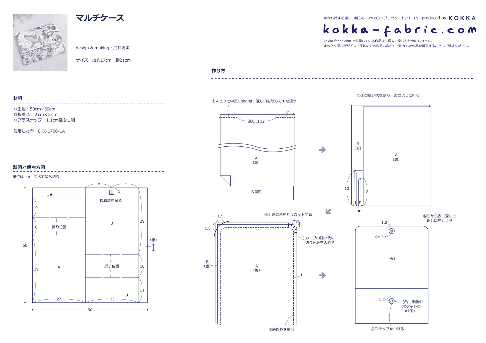 KF:武井さん、どうもありがとうございました!マルチケースの作り方プロセスも武井さんに撮影していただきましたので、ぜひ、作り方シート(PDF)と合わせて参考にしてくださいね。