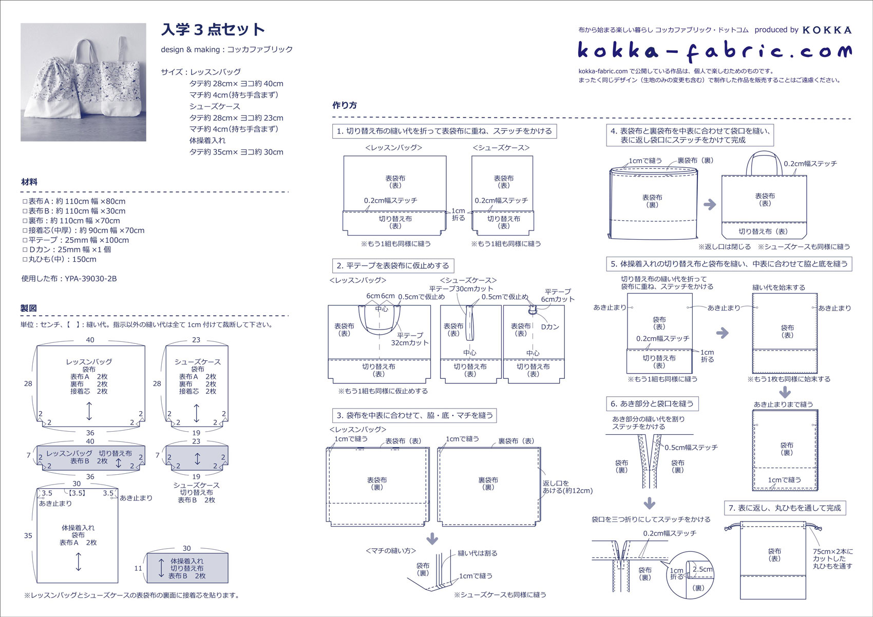 サイズ:レッスンバッグ:タテ約28cm×ヨコ約40cm マチ約4cm(持ち手含まず)シューズケース:タテ約28cm×ヨコ約23cm マチ約4cm(持ち手含まず)体操着入れ:タテ約35cm×ヨコ約30cm