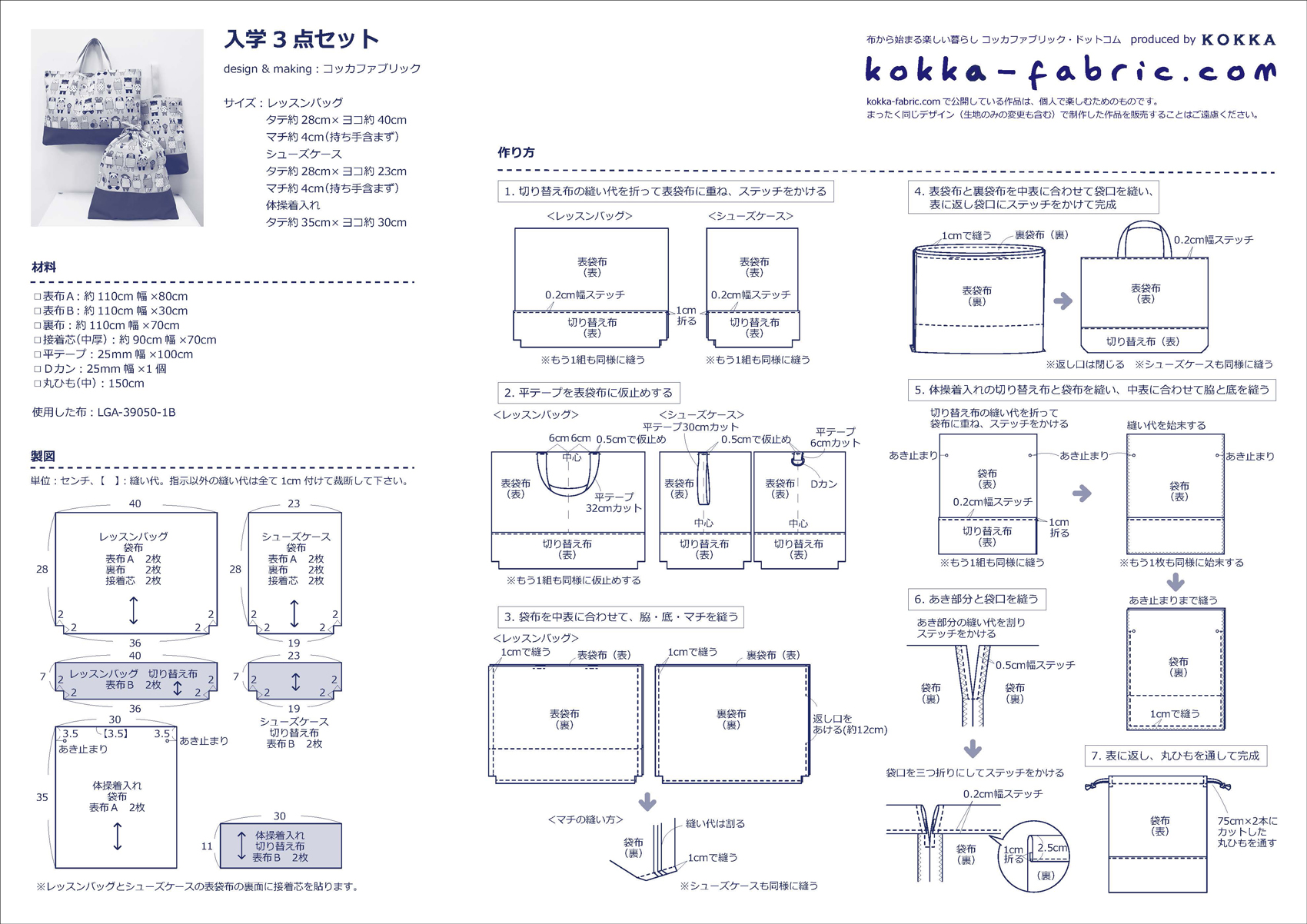 レッスンバッグ・シューズケース・体操着入れ。入学3点セットの作り方