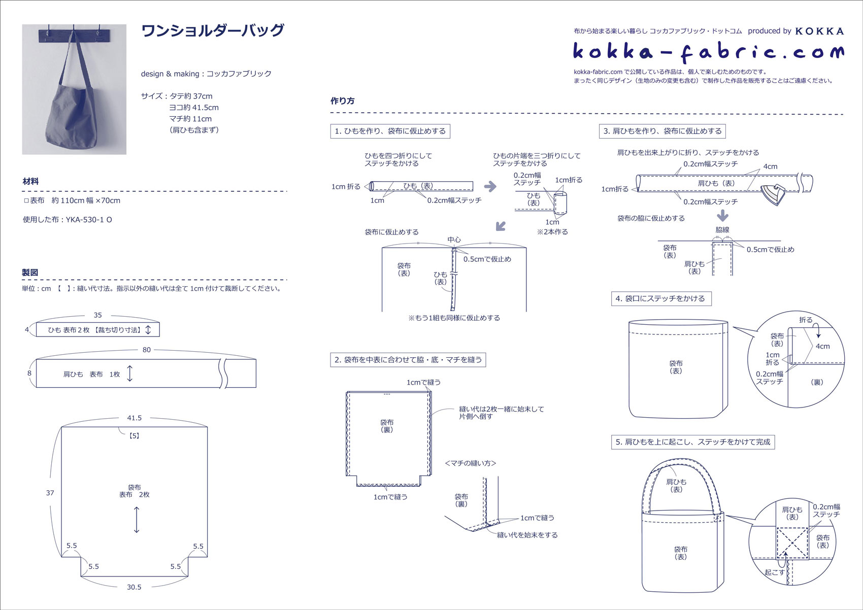 1枚布で作ったシンプルなワンショルダーバッグです。使った布は「NUNO TO MONO」シリーズのアクアブルー。11号帆布と8号帆布のあいだの厚さをもつ9.5号帆布です。「8号では分厚くて縫いにくいけれど、11号では頼りない…」という声にお応えして誕生しました。厚みがありながら縫いやすい9.5号帆布は、バッグづくりの「新定番」。使い込むほどに風合いが増して、くったりとするので愛着を持って使える生地です。コットン100%。ミシン針は厚地用の使用をおすすめします。