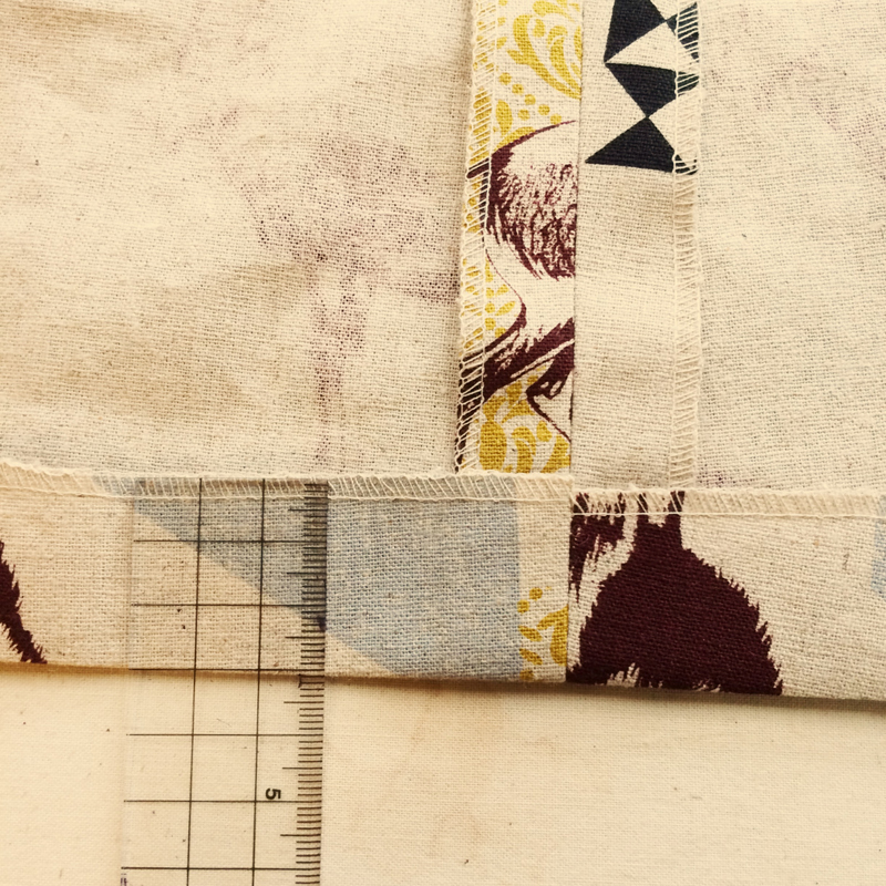 裾を3㎝折り、アイロンをかけ、ミシンまたはまつり縫いをしてでき上がり。