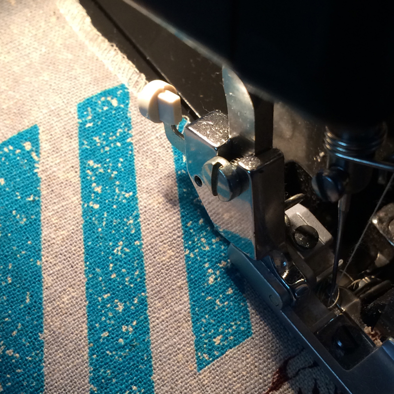 肩、脇、裾、ポケットにロックミシンまたはジグザクミシンをかける。