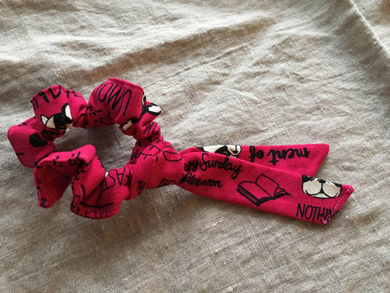 おそろいのシュシュも作ってみましたので、ヘアにつけて全体のコーディネートが楽しめるようにしました。