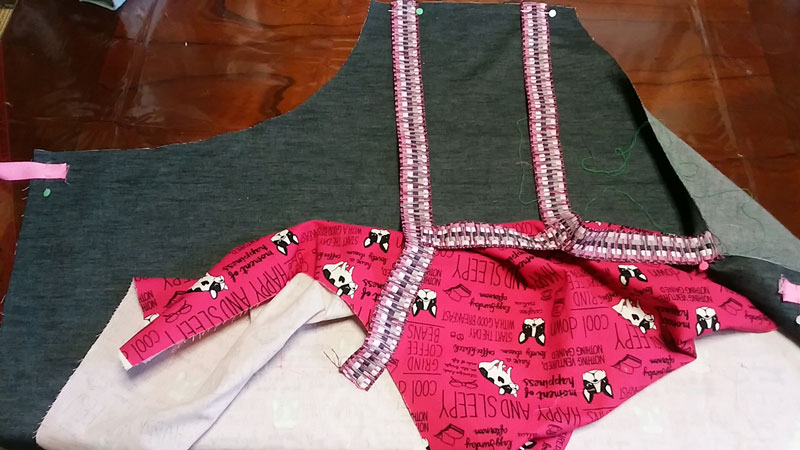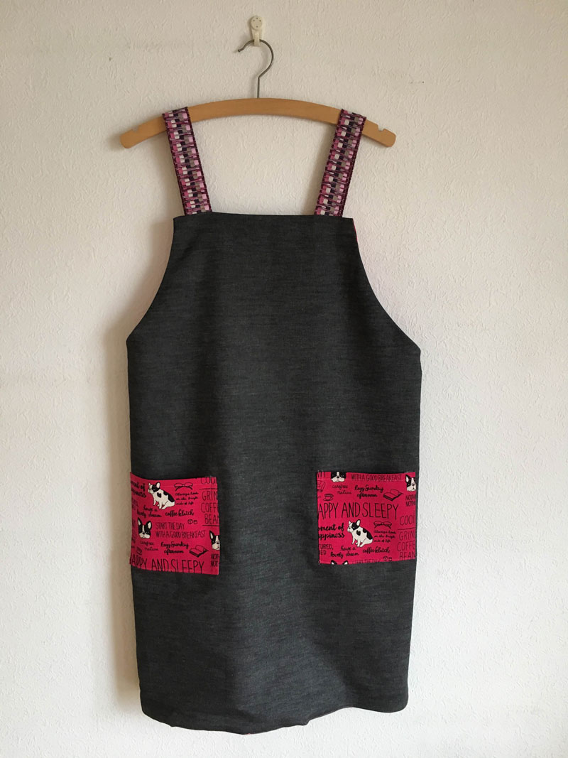 だんだん冬になって寒くなってきましたので、リバーシブルにして暖かく着用できるようにしてみました。エプロンとしてだけでなく、部屋着としてスパッツとあわせても楽しめると思います。