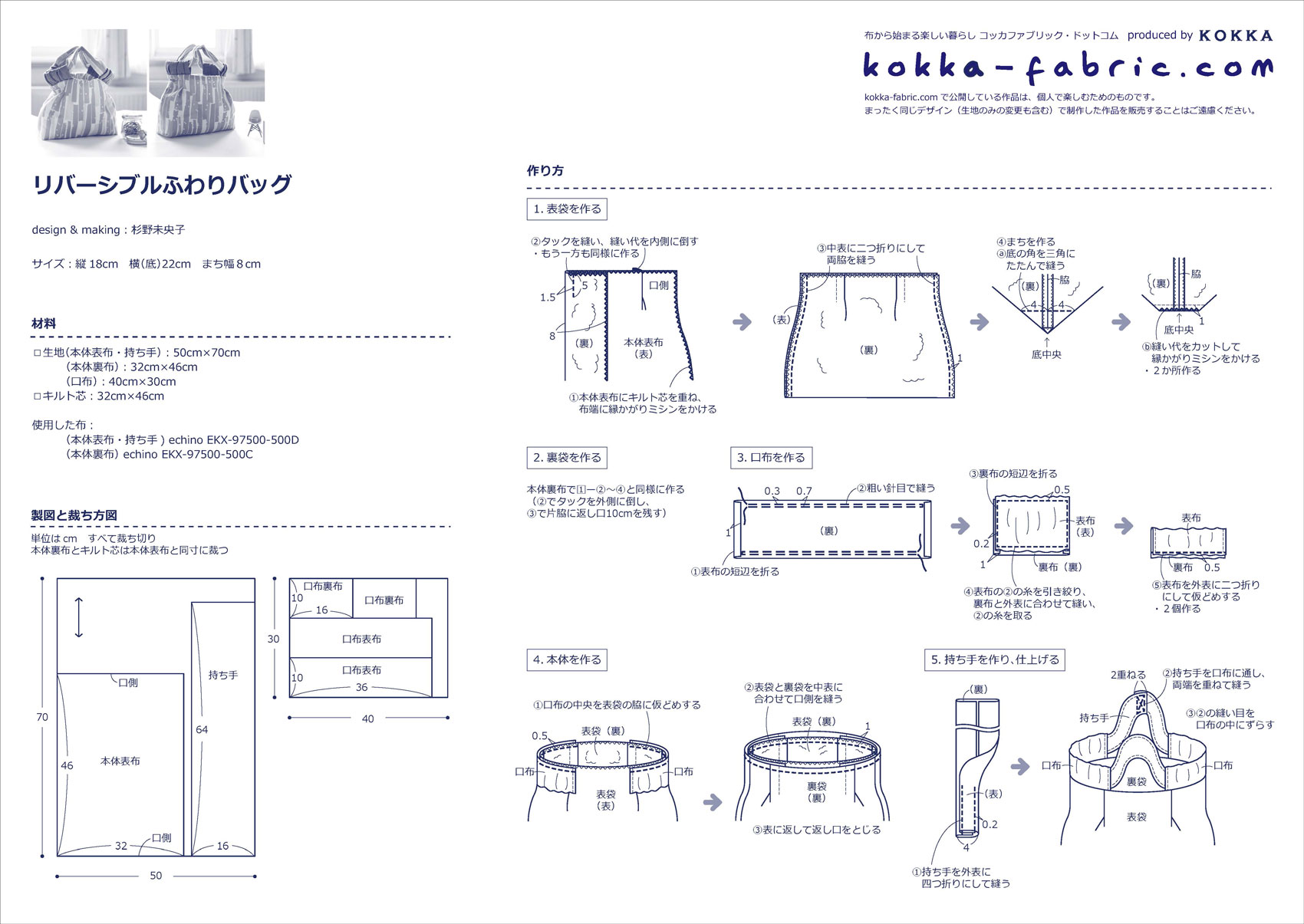 KF:杉野さん、どうもありがとうございました!リバーシブルふわりバッグの作り方プロセスも杉野さんに撮影していただきましたので、ぜひ、作り方シート(PDF)と合わせて参考にしてくださいね。