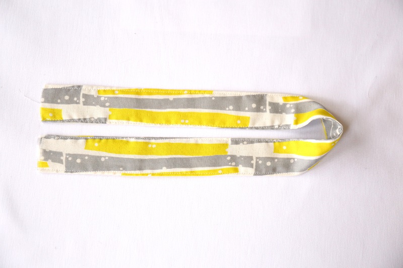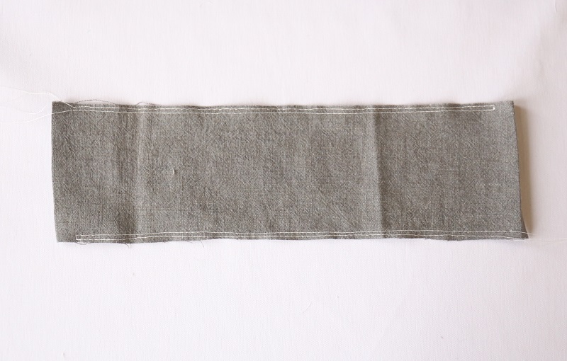 持ち手布を外表に四つ折りにして2辺を縫います。