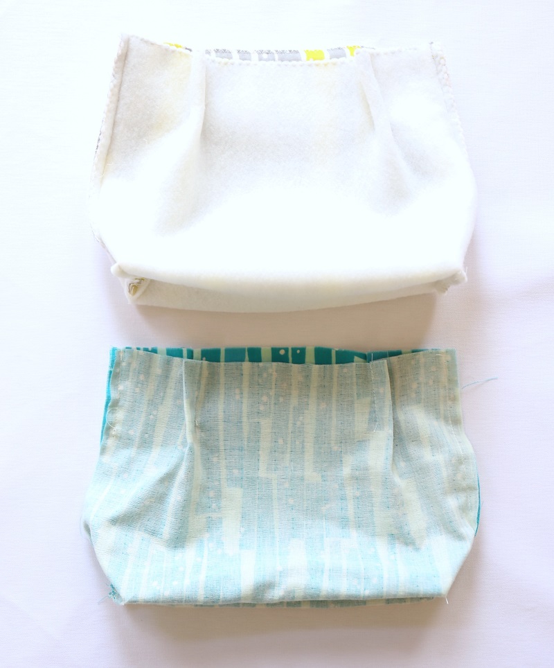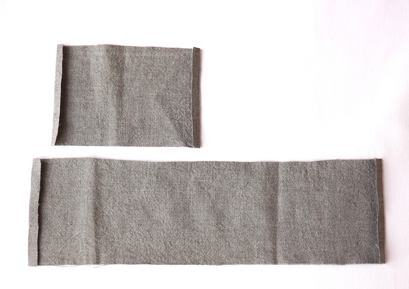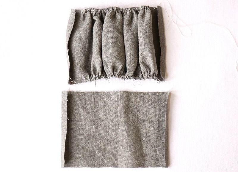 ギャザー用の表布と土台用の裏布を外表で合わせて縫い合わせます。2組作ります。