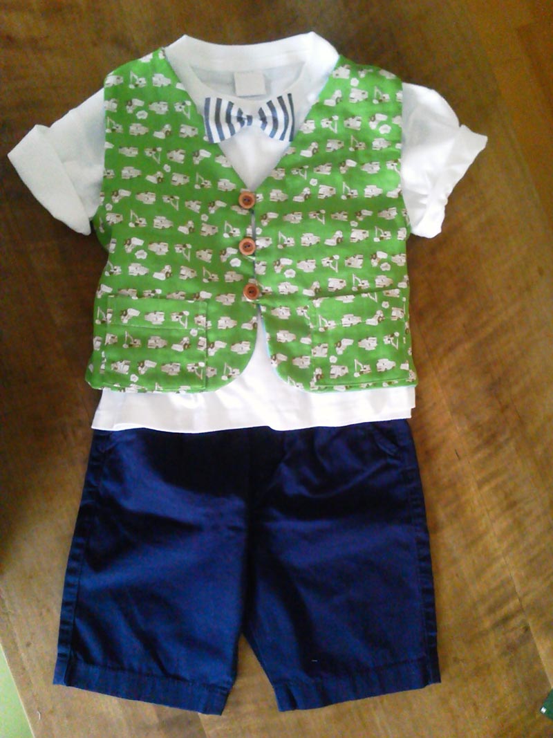 やわらかい肌触りときれいな発色が子ども服に向いていると思いました。子どもらしいプリントと色を生かしたいと思ってベストを作ることにしました。