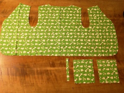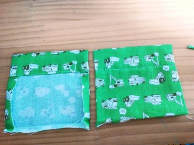 始めにポケットやループを作っておきます。ポケットとループは細かい作業もありますが、先に作っておけば、あとは少ない工程で完成するので、手軽に作れると思います。縫い代はすべて中に入るので、最後の肩の手縫い以外は、ロックミシンなどの縫い代の始末は必要ありません。