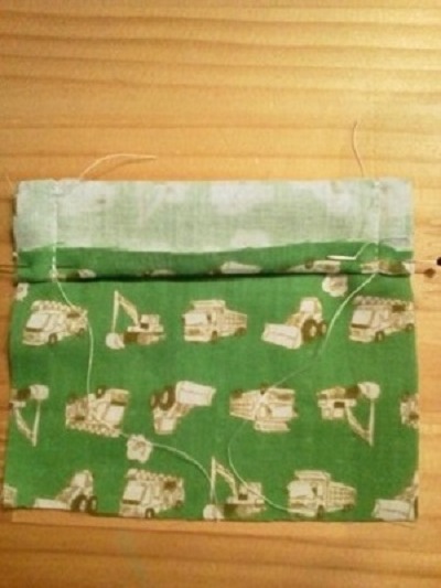 ポケット口の縫い代を表に返し、脇と底の縫い代を折ります。