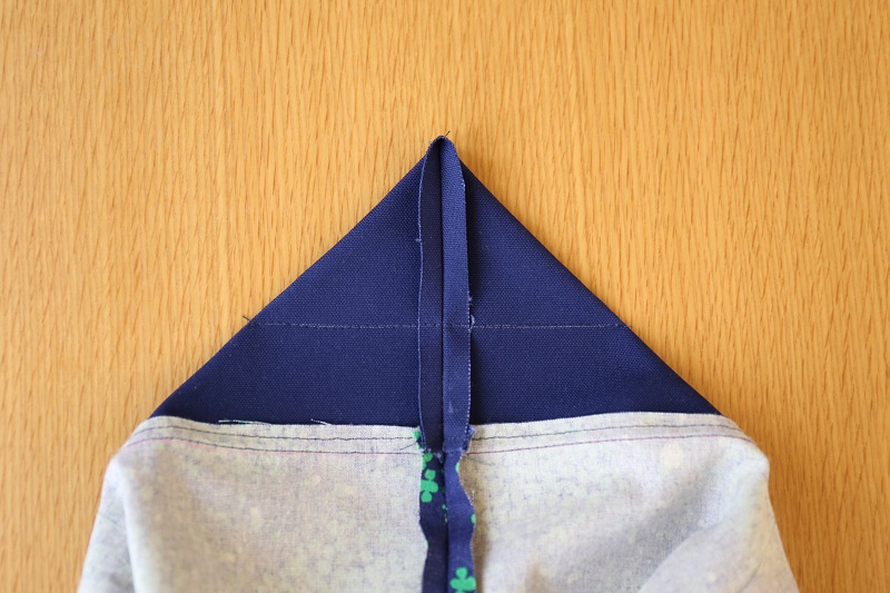 まちを14cmとって縫い、1cm残して余分をカットします。内布も同様に作ります。