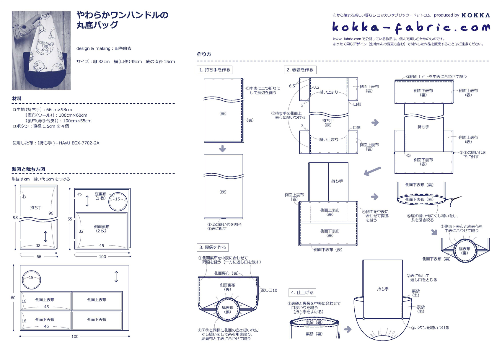 KF:田巻さん、どうもありがとうございました!やわらかワンハンドルの丸底バッグの作り方プロセスも田巻さんに撮影していただきましたので、ぜひ、作り方シート(PDF)と合わせて参考にしてくださいね。