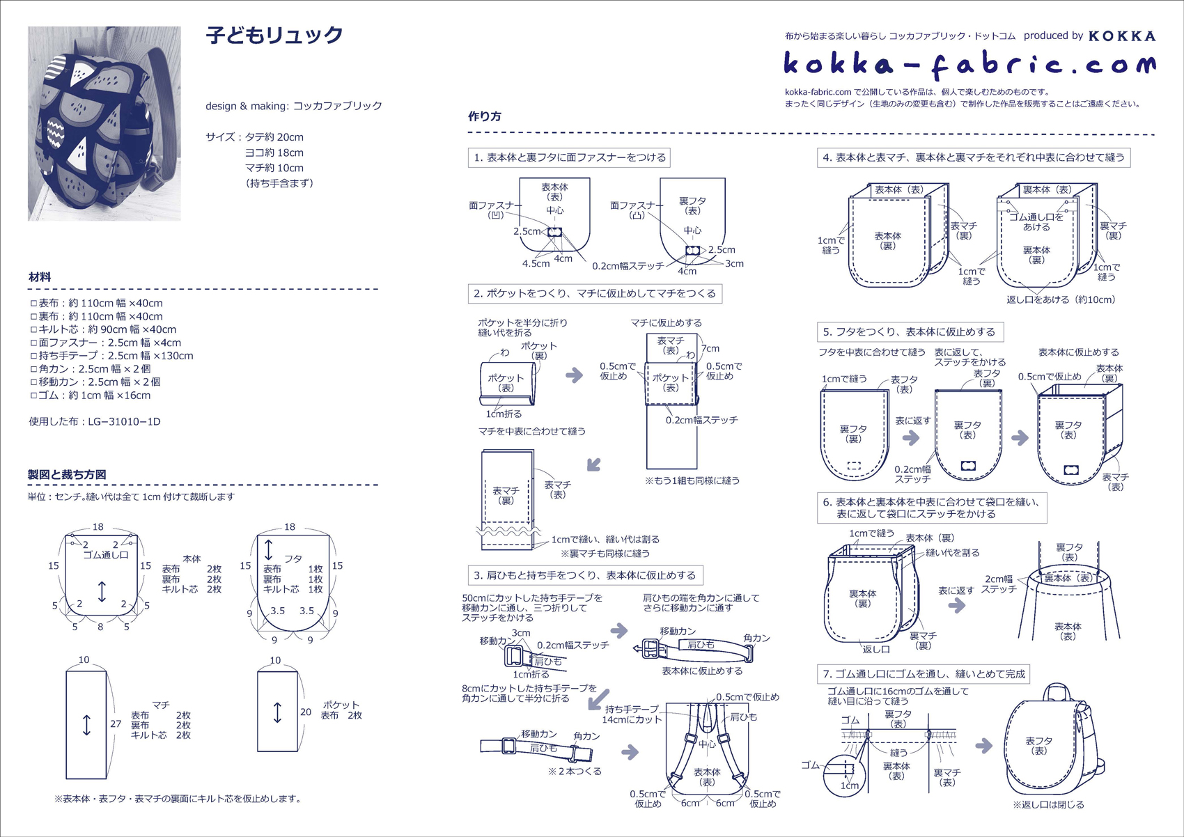 アウトドアが楽しい季節が到来♩ ランドセル型のふた付き子どもリュックです。おいしそうなスイカが並んだ賑やかな生地は「Scandinavian Fruit」シリーズ。コットン100%のオックスフォード地は縫いやすく、バッグづくりにぴったりです。