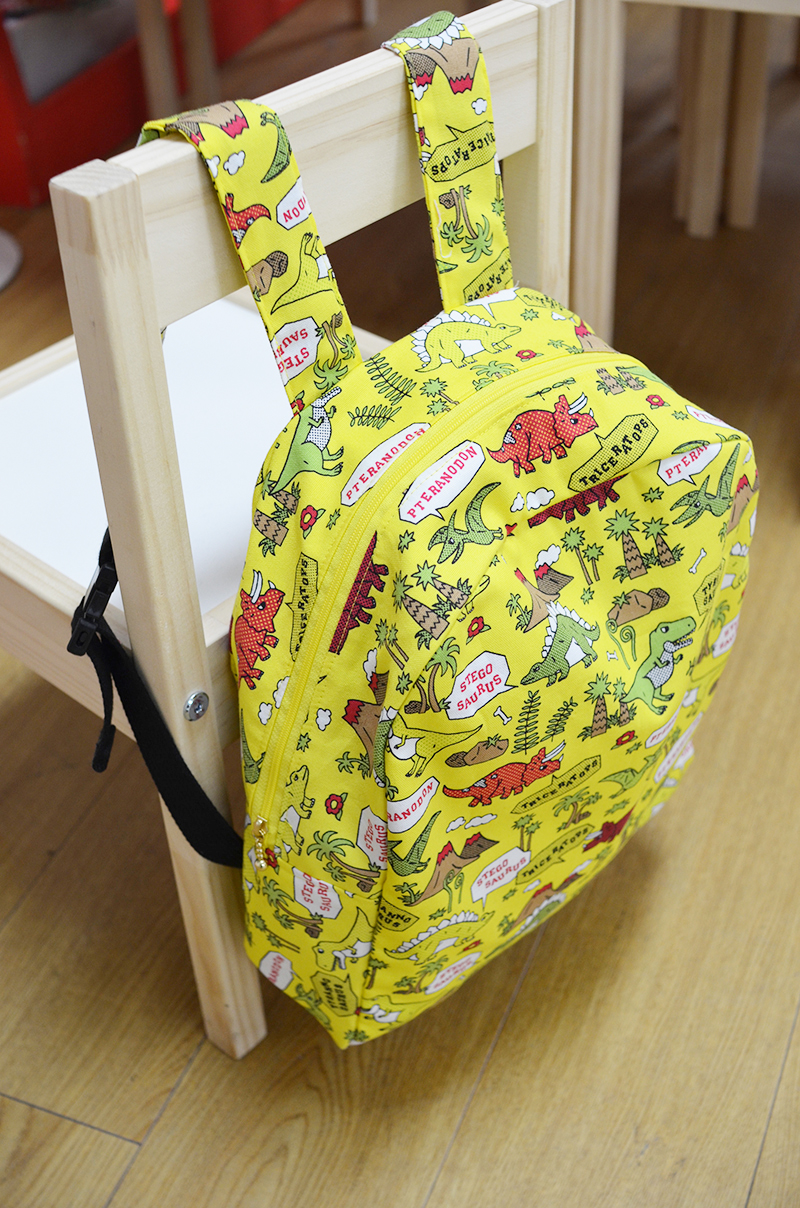 アメコミ調のにぎやかな恐竜柄で作ったリュックサックです。男の子向けでは珍しい黄色もポップなアメコミ風の柄にマッチ。お出かけが楽しくなりそうですね!