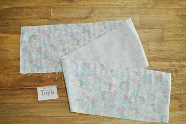 生地のたたみ方がポイントです。 縫う箇所は2か所の直線縫いのみ、とても簡単です。 ミシンがない場合は手縫い(返し縫い等)も可能です。