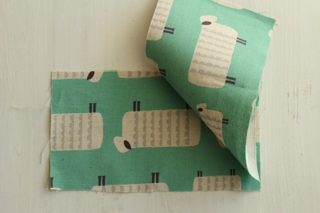 ところどころに小さな羊さんがいて、それがとても可愛いかったので、その部分がメインにくるように裁断しました。
