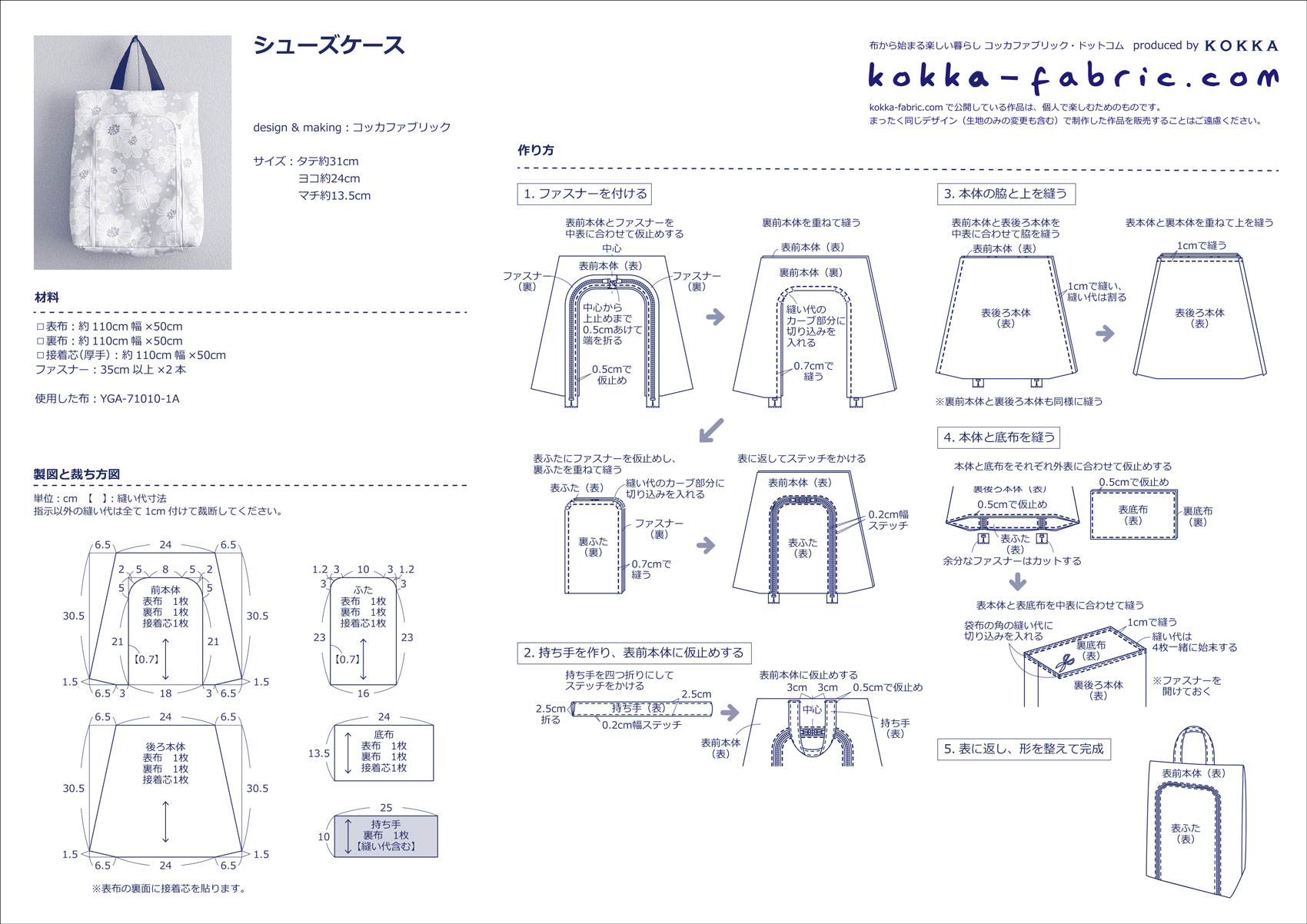 手提げタイプのファスナー付き♪ シューズバッグの作り方