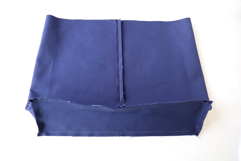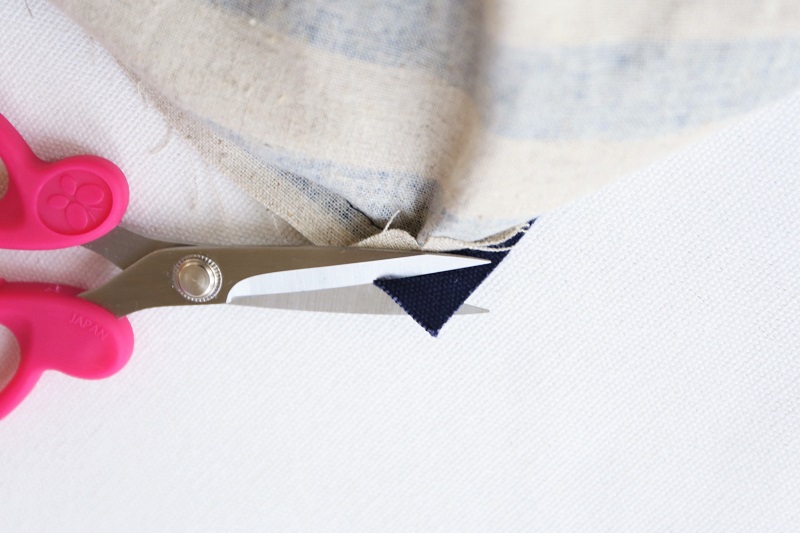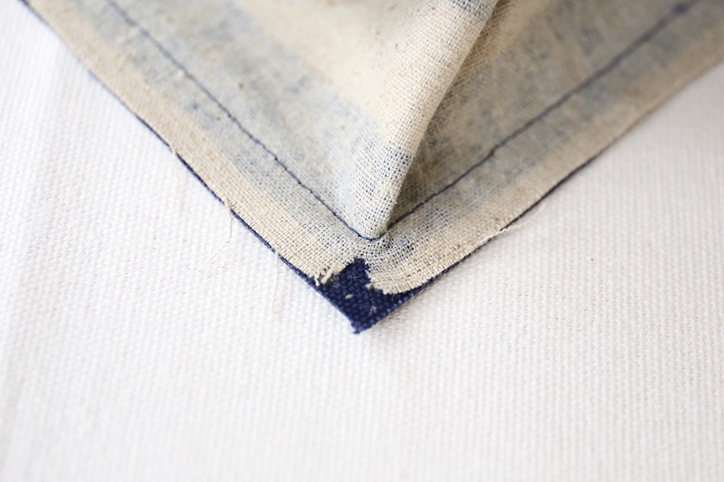 かっちりさせたかったので、底と内布は9.5号帆布を使いました。自立できます。底の角部分を縫うのは難しいと感じるかもしれませんが、正しい位置に印をつける、切り込みを入れるなど、ちょっとした手間を加えると、意外とスムーズにできますよ。