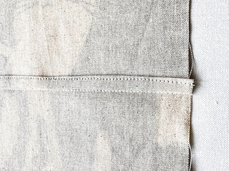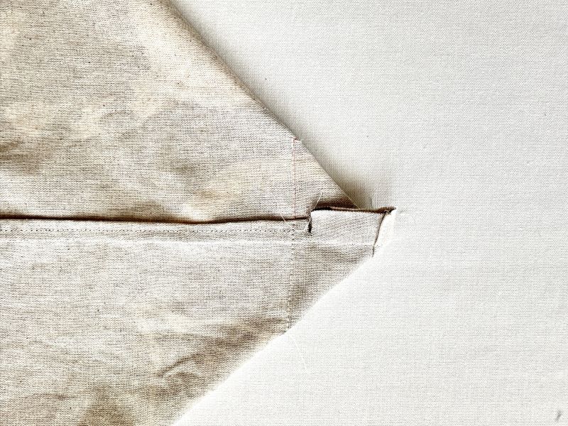 表に返し、口布の下辺を1cm裏へ折って、2本ステッチをかけます。