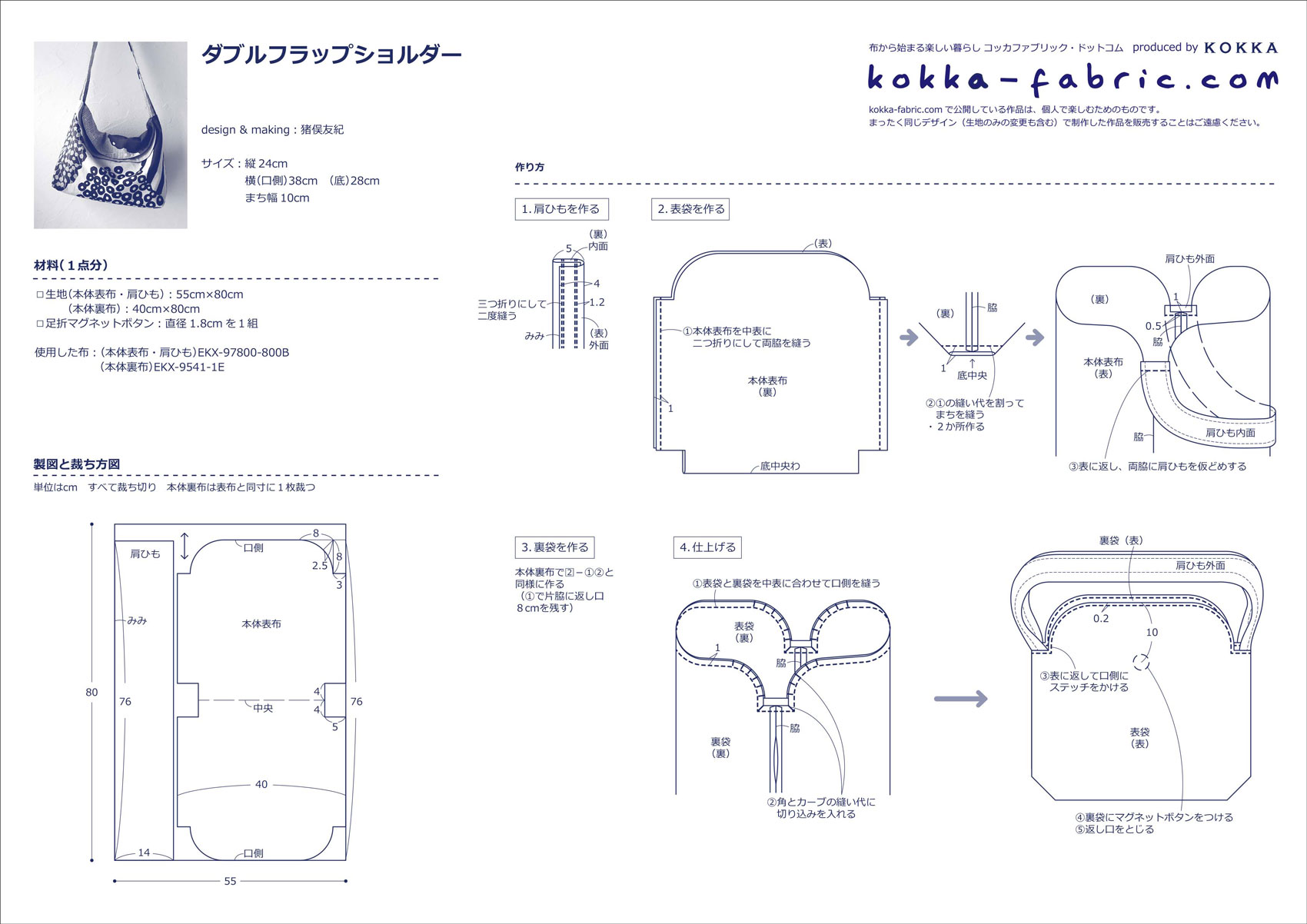 KF:猪俣さん、どうもありがとうございました!ダブルフラップショルダーの作り方プロセスも猪俣さんに撮影していただきましたので、ぜひ、作り方シート(PDF)と合わせて参考にしてくださいね。
