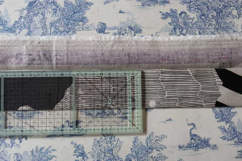 本体表布、本体裏布、肩ひもを寸法どおりに裁ちます。