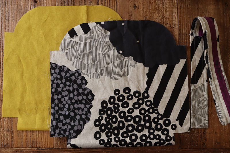 今回の生地は大柄で存在感のある大柄な生地。小物よりバッグのほうが印象が伝わりやすいので、比較的面積の大きいバッグづくりにおすすめです。
